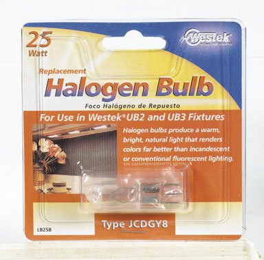 WESTEK HALOGEN LIGHT BULB *25 watts *120 volts *TYPE JCD *GY8 2 pin base *4mm pin spread *For Ace No. 3088754, 3090586, 3088804, 3088747, 3088739, and 3090552 *UL, CUL listed